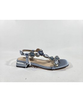 69,90 €Sandalo elegante da donna blu con accessorio. Tacco da 4 cm no plateau. Regolabile alla caviglia con fibbia in metallo e plantare in vera pelle imbottito.